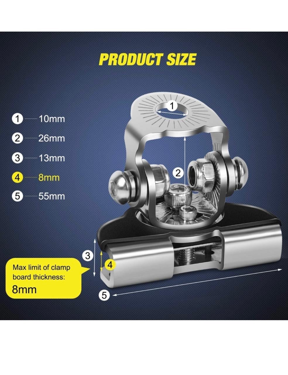 - Design: Adjustable clamp bracket suitable for mounting on the hood, pillar, or grille